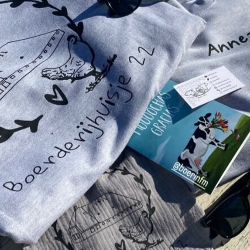 Doordat alle kleding zelf wordt bedrukt zijn er vele opties mogelijk. Denk bijvoorbeeld aan een leuke tekst of een lijntekening van een bestaande foto! Binnen Boerinfm is alles mogelijk.