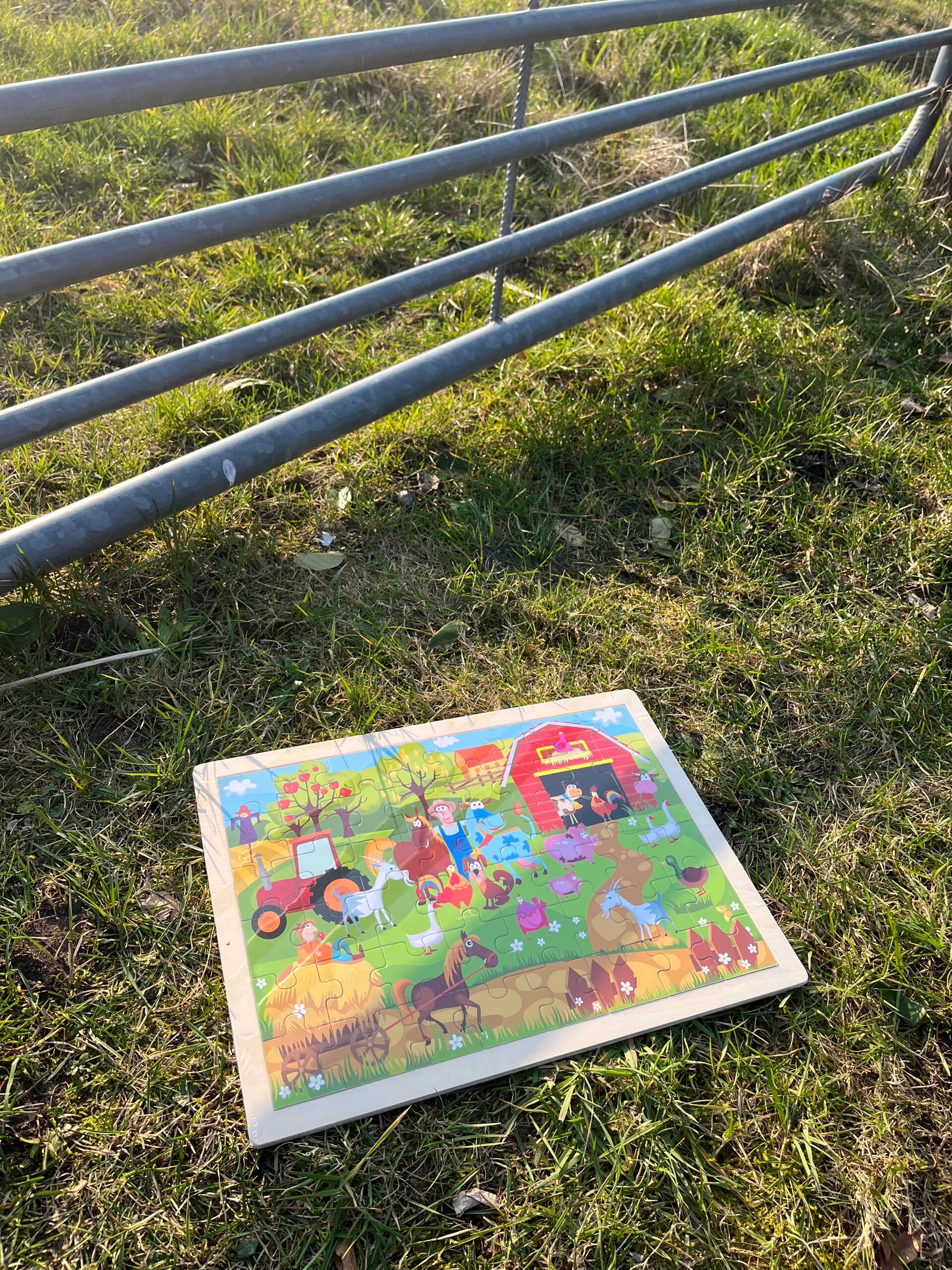 Deze leuke boerderij legpuzzel bestaat uit maar liefst 48 puzzelstukken. Op de puzzel staat een leuke afbeelding van een boer met zijn boerderijdieren, boerderij en tractor. De puzzelstukken zijn gemaakt van stevig hout en passen perfect in elkaar.